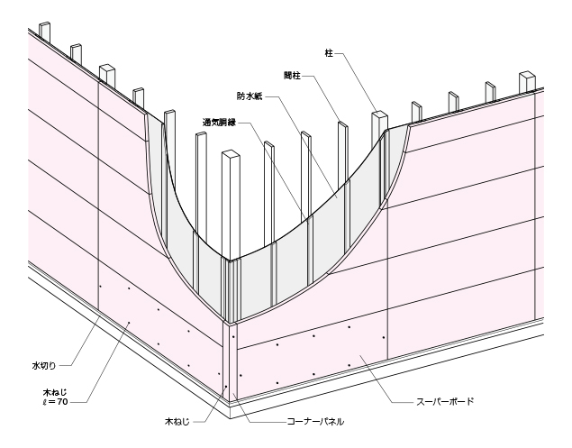 防水紙を使用される場合は、スーパーボード透湿防水シート(JIS A 6111)の使用をお薦めします。